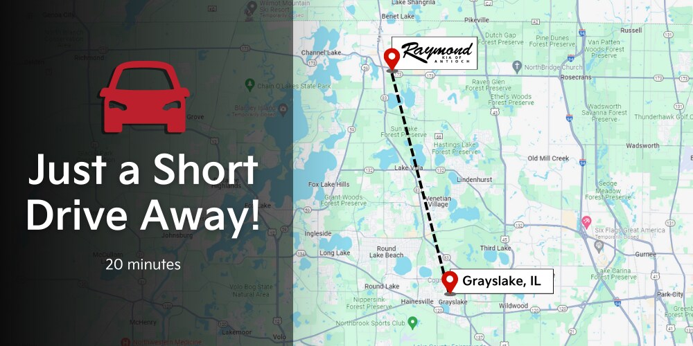 Raymond Kia is your local Kia dealer near Grayslake, IL! Conveniently located just a quick 20 minute drive up IL-83 N, our friendly staff is waiting to get you behind the wheel of your dream car.