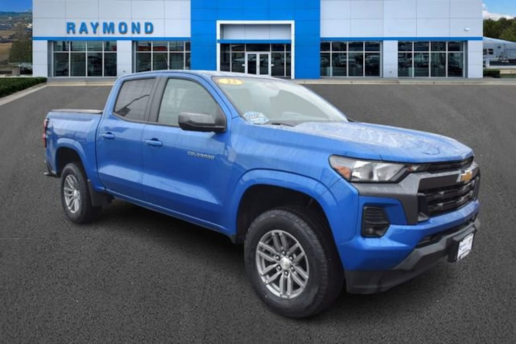 Finished in Glacier Blue Metallic, this redesigned Colorado stands out with bold styling and serious capability. Available now at Raymond Chevrolet Kia, proudly serving the community since 1963.