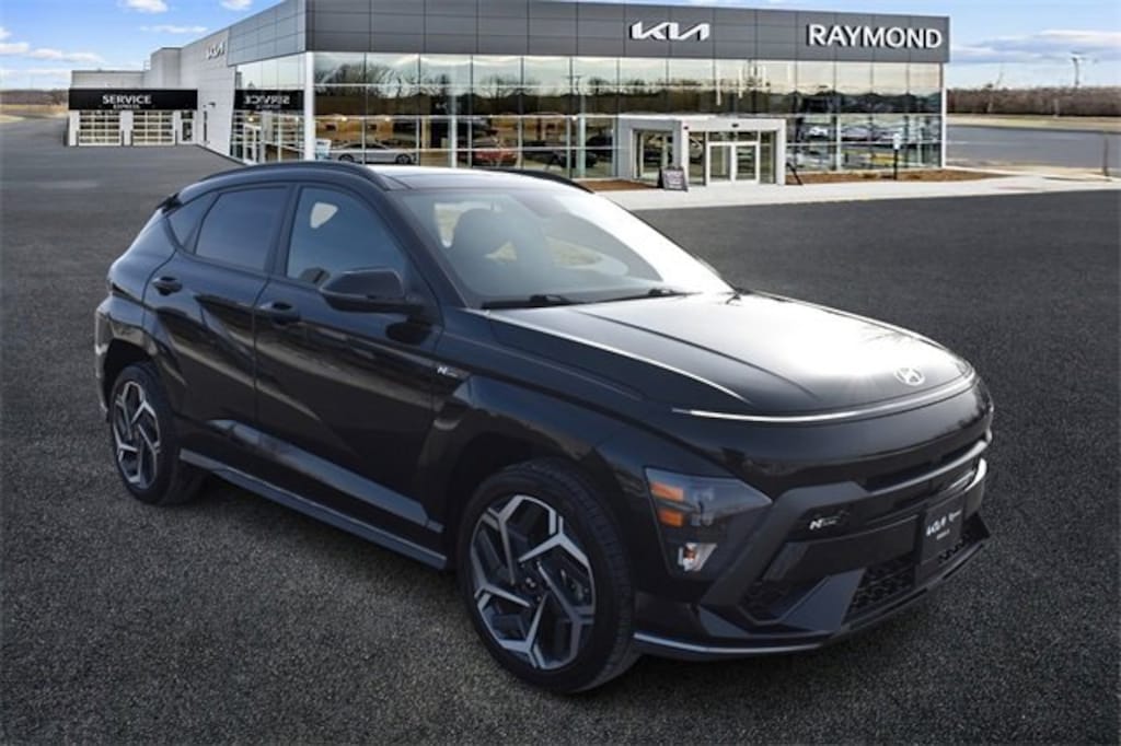 This Abyss Black Pearl 2024 Hyundai Kona N Line AWD is a CARFAX One-Owner vehicle with a Clean CARFAX and features 5,506 miles below market average, making it an excellent value.